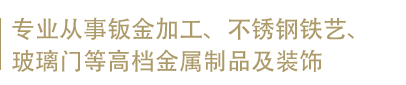 宁波吕浩文化展览策划有限公司是一家专业从事钣金加工、不锈钢铁艺、玻璃门等高档金属制品及装饰的民营生产企业,我们始终以“品质为先”诚信为本的经营理念求发展